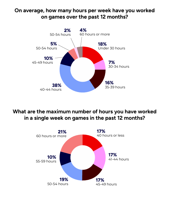 工作时长与加班文化仍是行业焦点,83% 的受访者曾单周工作超过 40 小时,50% 曾单周工作 50 小时以上,21% 曾单周工作 60 小时以上。全职员工中,43% 平均每周工作 40-44 小时(美国全职员工为 47%),87% 的全职员工有加班经历,49% 曾单周工作至少 50 小时,21% 曾单周工作至少 60 小时。加班原因上,60% 的受访者表示 “核心工作过多,无法在标准 40 小时内完成”,56% 归因于 “自我压力”,14% 认为是 “人员缩减”,10% 提及 “管理层压力” 和 “同事压力”,16% 因 “担心负面后果(如失业、错失晋升机会)”。独立开发者的加班更易受自我压力驱动,89% 的独立开发者将其列为主要原因。
