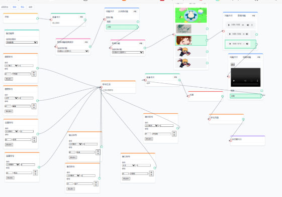 这是个可以在网页运行的连线编辑器。玩法中所有用到的内容都被包装成了“卡片”,比如故事,问题,问卷,排行榜,称号等等。这类编辑器常见于一些低代码工具中,比如游戏引擎的shader编辑、AI画图的comfy ui等等。