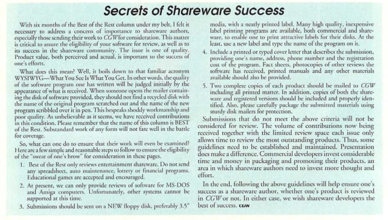 独立游戏评论专栏 “其余精选”(Best of the Rest)中最有趣的部分是,编辑添加了一个特别板块,恳请开发者让自己的游戏更像样一些,这样他们才能在杂志上对其进行报道。