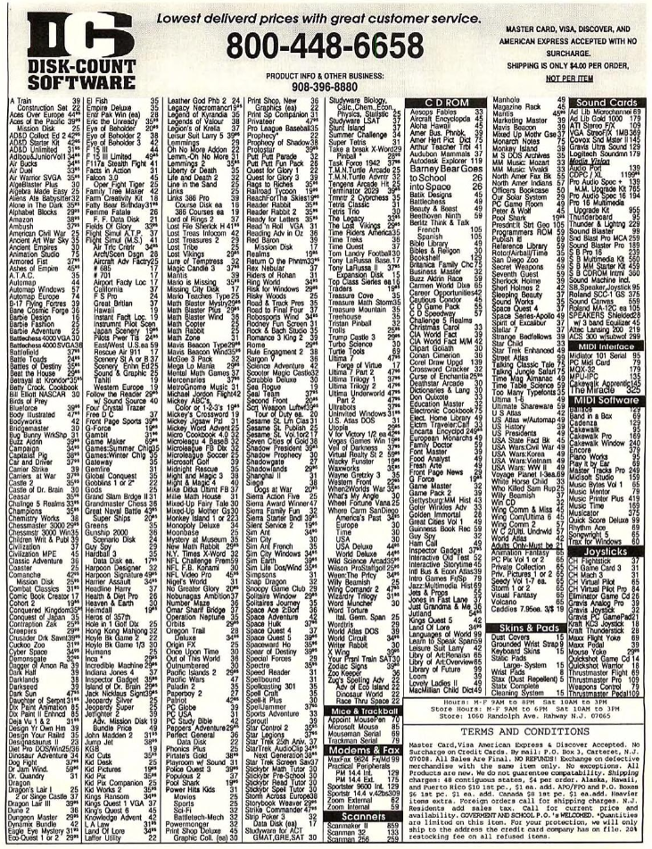 这是一则邮购目录广告,你可以直接从 “磁盘折扣软件”(Disk-count software)订购游戏。我粗略估计,这份清单上有 1130 款游戏在售。这比 Steam 首页的游戏密度还要高。游戏的可发现性一直是个难题。