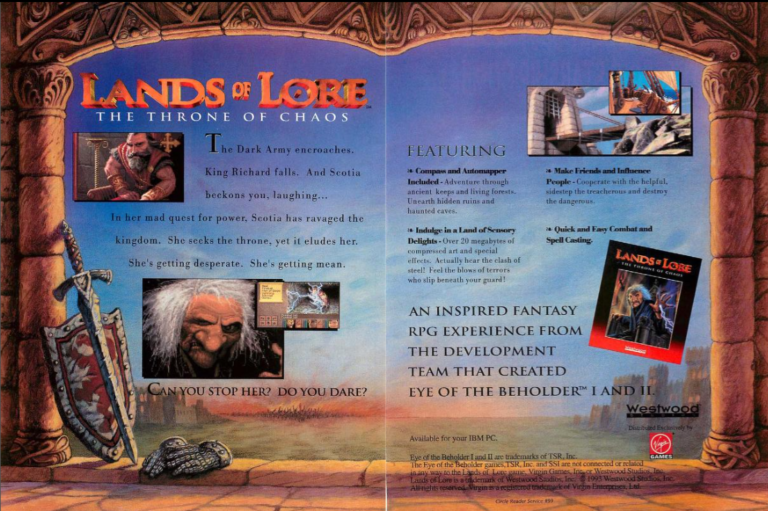 看看这则《Lands of Lore: The Throne of Chaos》的广告。看看那些粗犷的人物,看看框架建筑上的花纹。
