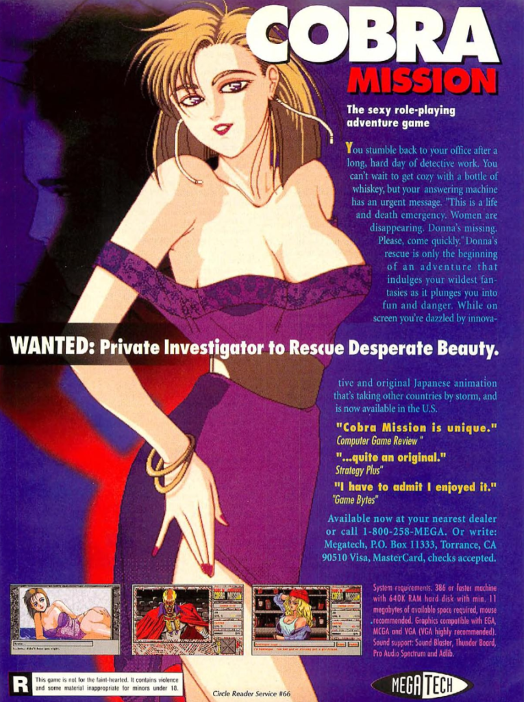 这是杂志中的一整页广告,宣传的是第一款进入西方市场的成人向游戏(Hentai game)。