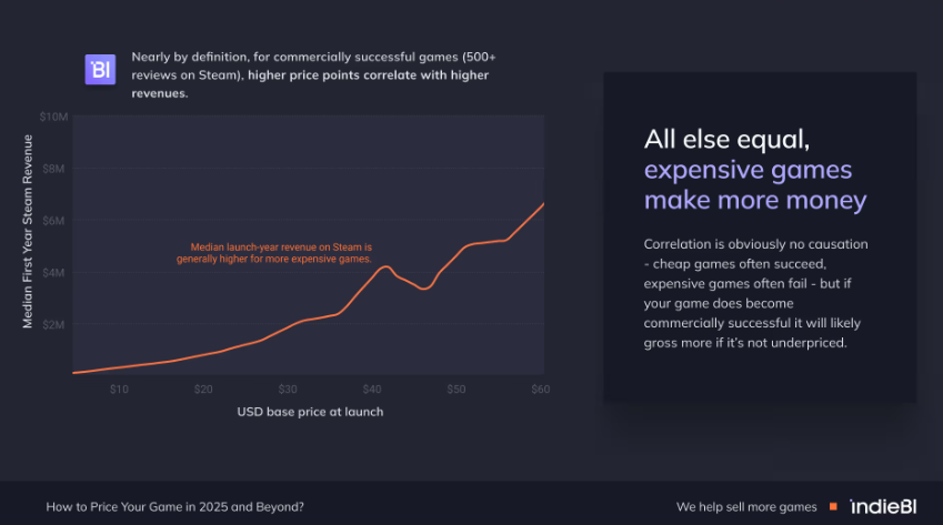 7.高定价意味着 “高品质游戏”:定价传递的是 “游戏的野心” 与 “团队对自身作品质量的认知”。玩家对 “40 美元游戏” 与 “7 美元游戏” 的预期截然不同。你完全可以选择将游戏定价高于细分市场内的其他产品 —— 这是一种大胆策略,但切实可行。在充斥着低价产品的市场中,高定价能有效传递 “你的游戏是卓越 premium 体验” 的信号。