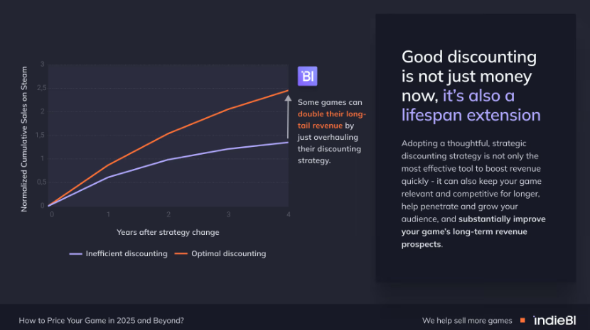 主动折扣与价格管理:上线后,折扣将逐渐成为收入的重要组成部分。Steam、Switch 等平台会为折扣游戏提供额外曝光,玩家也普遍青睐优惠。折扣很快会成为 “优化游戏收入的最强工具”—— 但这需要你持续监控 “每次促销的效果”“商店页面转化率”“愿望单激活情况”,并不断调整折扣计划,以确保其与内容更新、营销活动协同。因疏忽或人为失误错过折扣时机,可能意味着损失数万美元收入;为 DLC 选择不当的折扣力度,可能导致 1/3 的销量流失。一套规划周密、执行到位的折扣策略,往往能贡献游戏终身收入的一半以上。