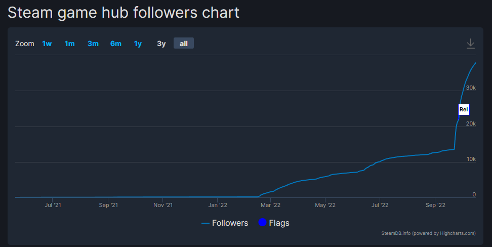 从图表中可以看出,尽管这款游戏具备 “独特魅力”,但在发布后的最初 6 个月左右,并未获得太多关注。