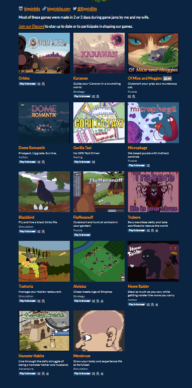 如果你目前正处于游戏开发阶段,且尚未看到早期的热度增长,也请不要放弃。坚持下去,你需要不断发布作品积累经验。看看 Bippinbits 工作室,他们制作了如此多的游戏,并非每一款都能大获成功,但他们始终专注于打造玩家喜爱的游戏。